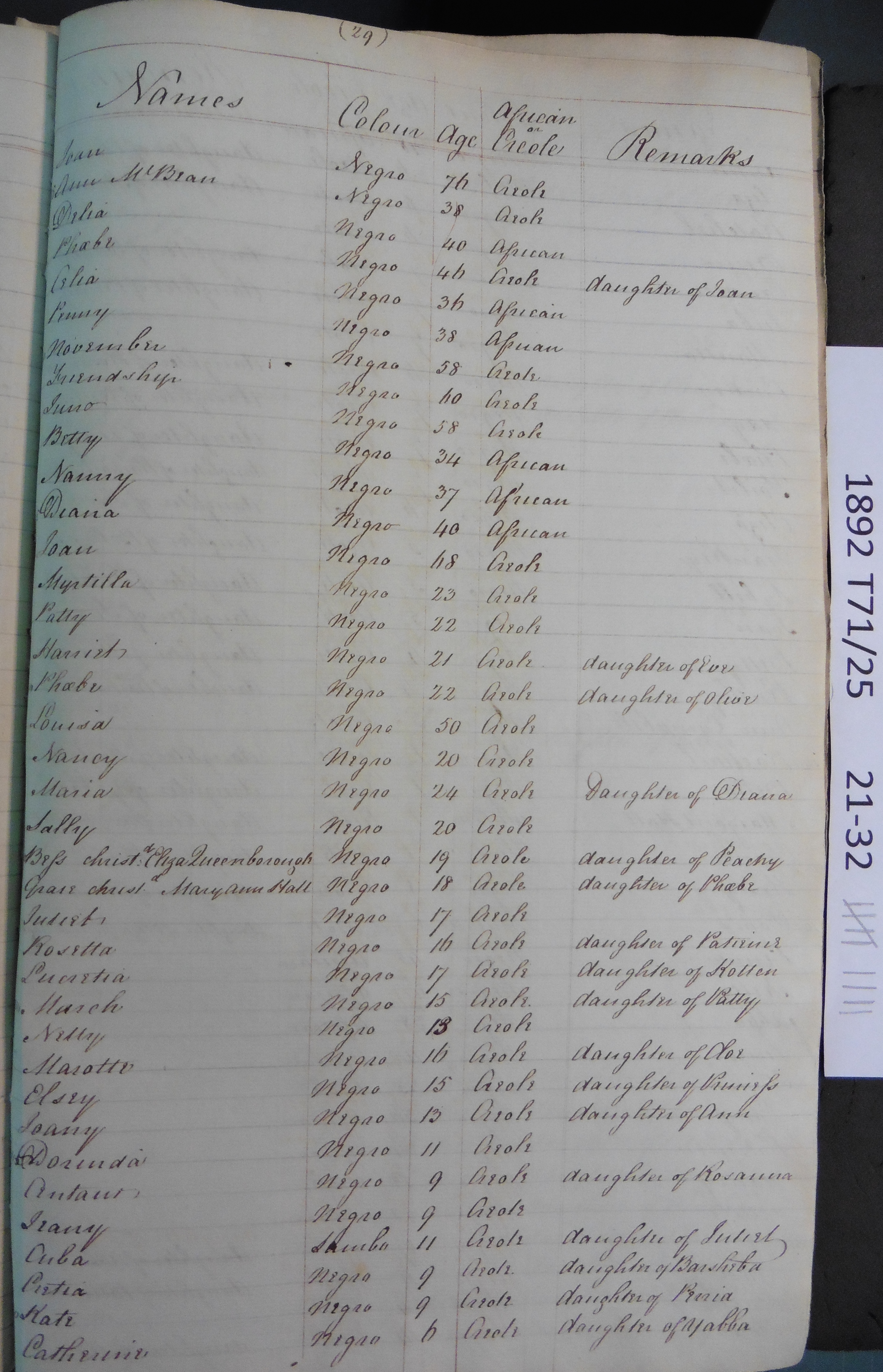 Slave register entry for Bybrook estate in 1817, page 9 of 12. T71/25 pp. 21-32. © Images reproduced by permission of The National Archives, London, England. The National Archives give no warranty as to the accuracy, completeness or fitness for the purpose of the information provided. Images may be used only for purposes of research, private study or education. Applications for any other use should be made to The National Archives, Kew, Richmond, Surrey TW9 4DU, Tel: 020 8392 5225 Fax: 020 8392 5266.