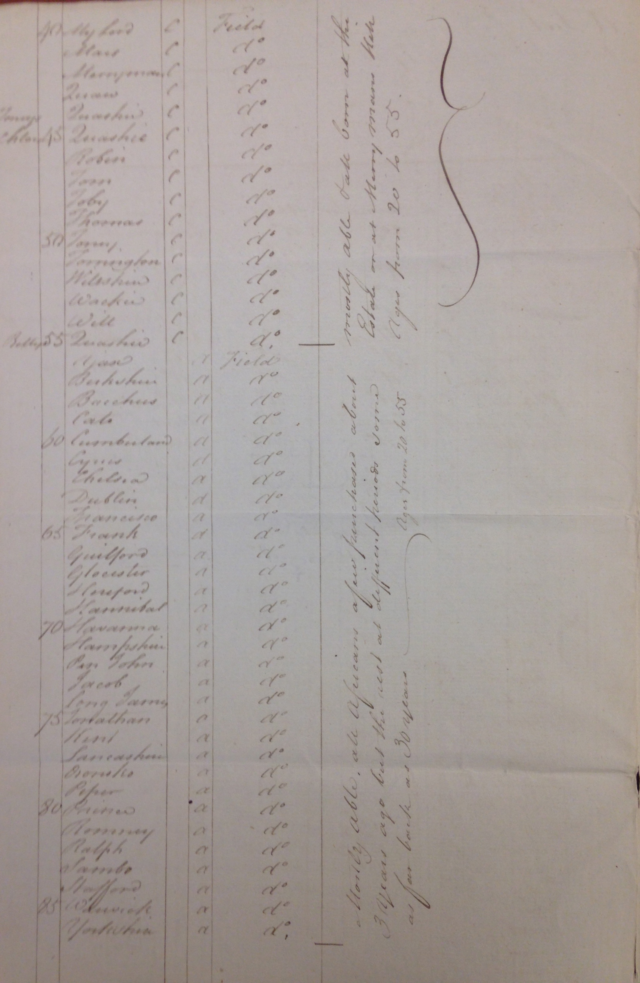 A list of enslaved people on Hope estate in 1788 with details of ages, parentage, occupation and general health, page 2 of 8. Source: 'A List of Negroes on Hope Plantation in Saint Andrew taken 1 January 1788', West Indies Box 1, folder 12, Stowe Papers, The Huntington Library, San Marino, California.