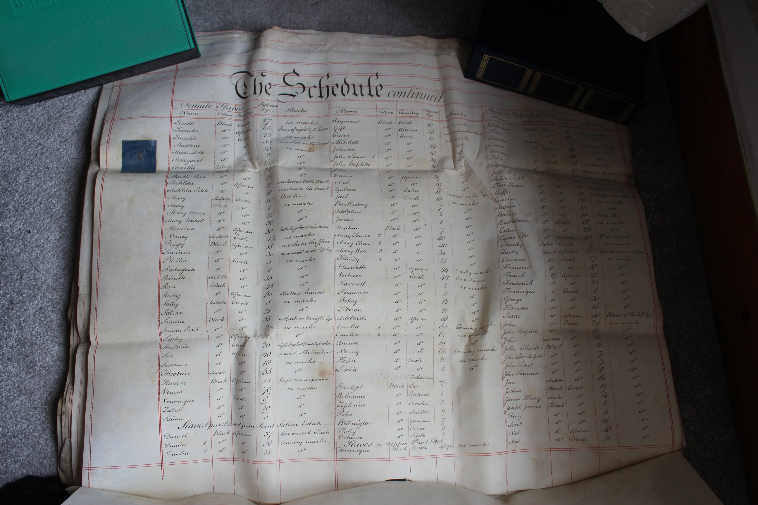 Schedule of enslaved people on Upper and Lower Pearl estate in 1819 listed as part of the indenture whereby the estates were conveyed to John Goodson. Page 3 of 4.