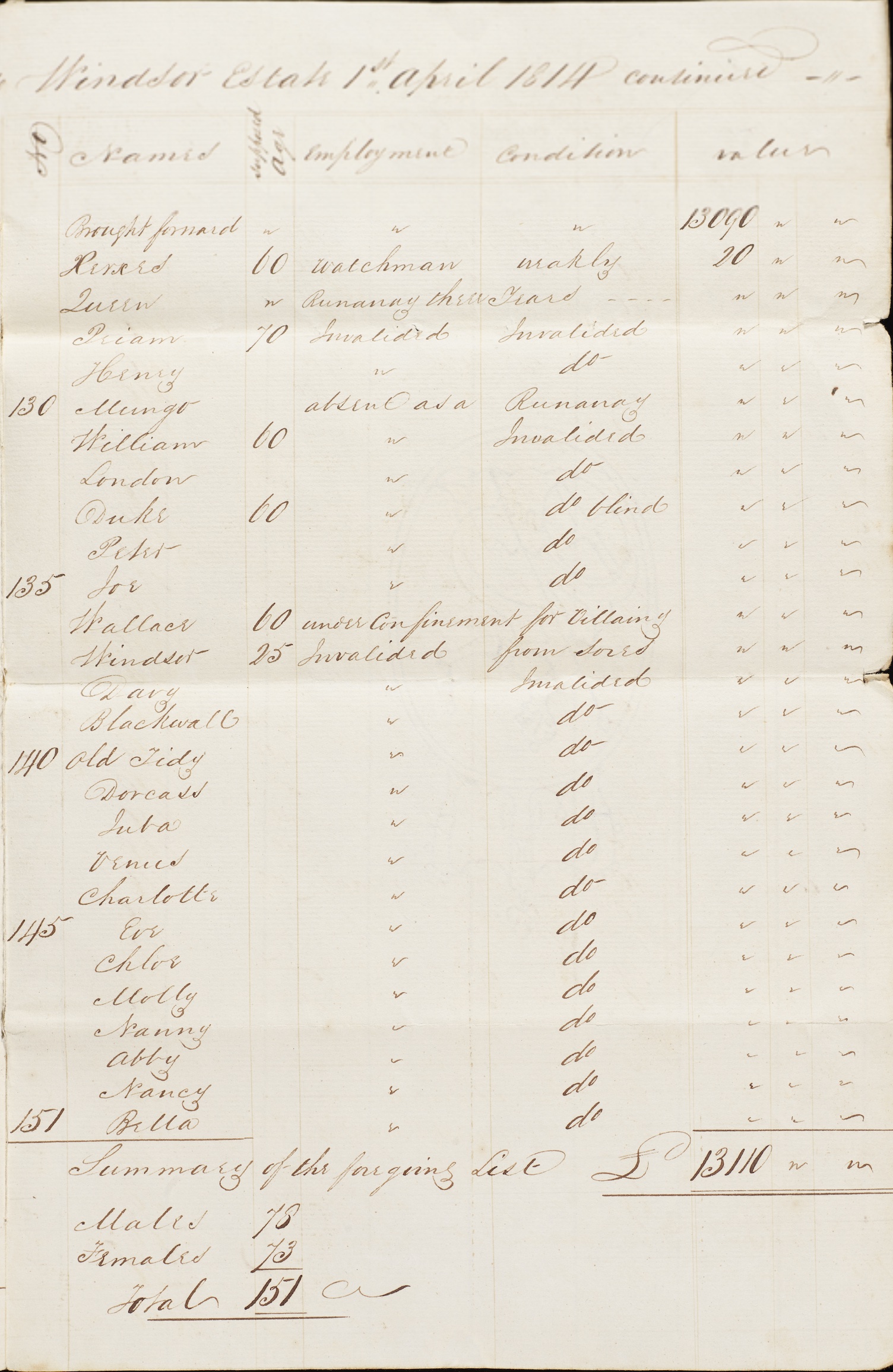 1. An inventory and valuation of enslaved persons at Windsor Estate, St Elizabeth parish, Jamaica, 1814.