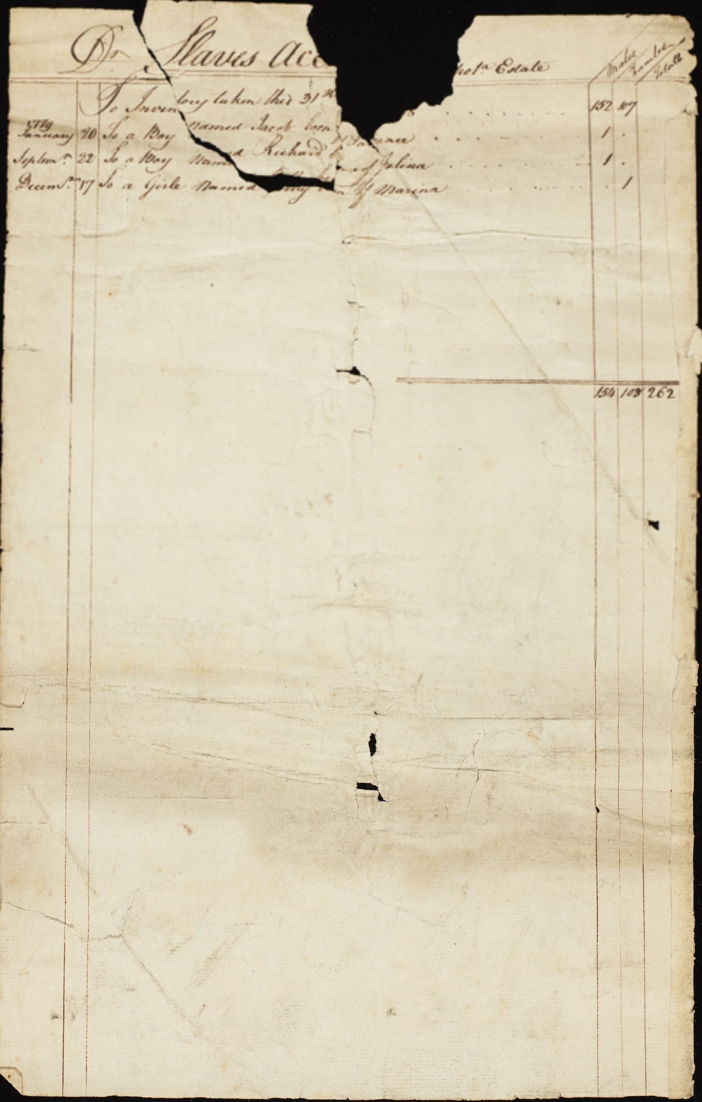 Document comprises a cover or title page (recto) and part of an inventory of enslaved people (verso) on Mesopotamia plantation, Jamaica, for the years 1779-80 on a single folio.