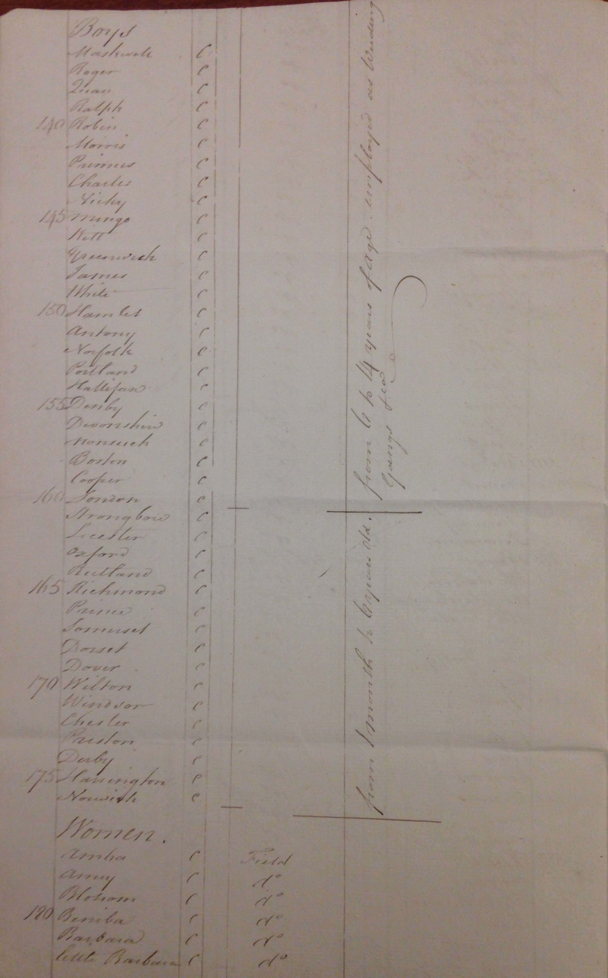 A list of enslaved people on Hope estate in 1788 with details of ages, parentage, occupation and general health, page 4 of 8. Source: 'A List of Negroes on Hope Plantation in Saint Andrew taken 1 January 1788', West Indies Box 1, folder 12, Stowe Papers, The Huntington Library, San Marino, California.