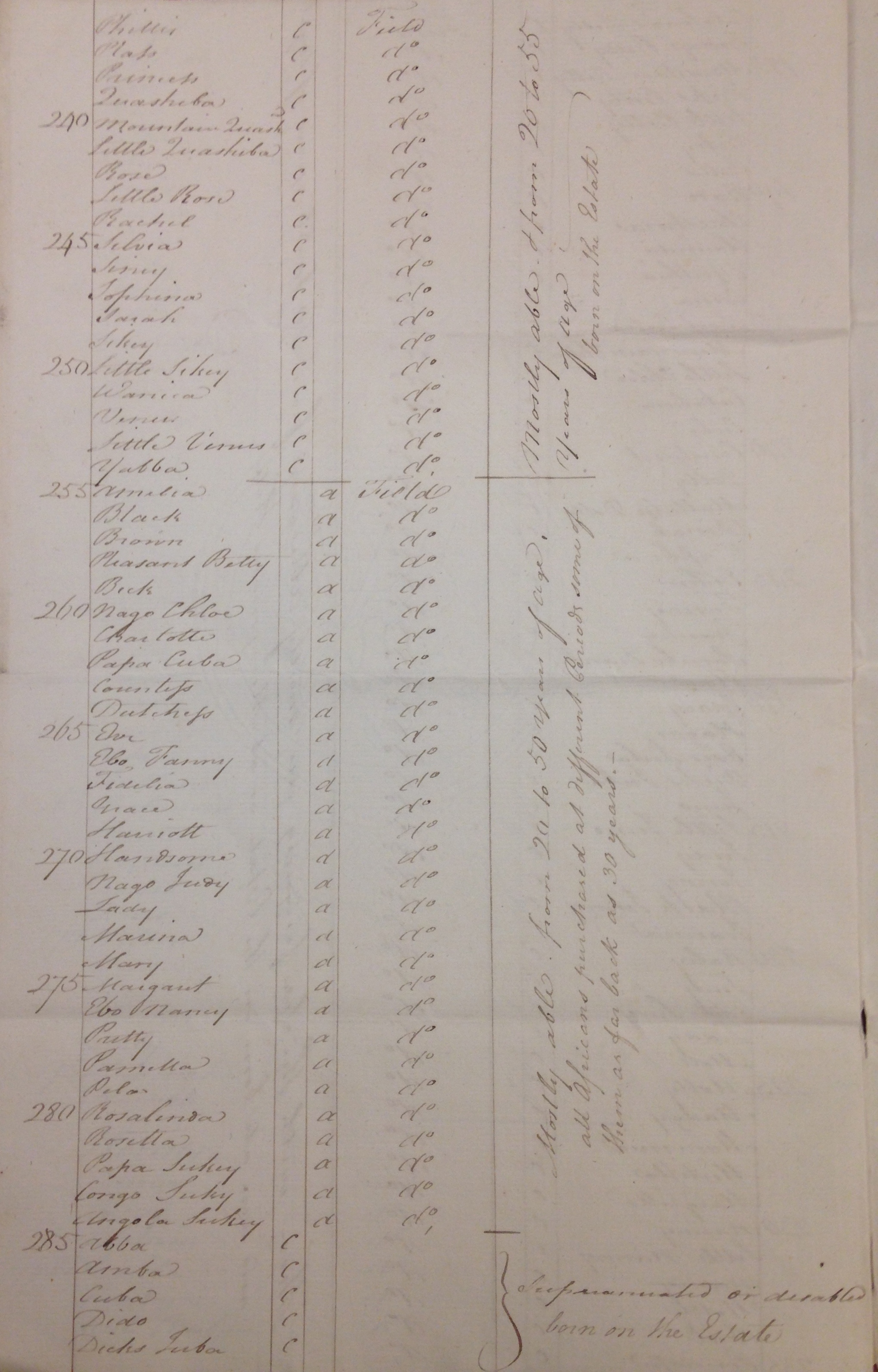 A list of enslaved people on Hope estate in 1788 with details of ages, parentage, occupation and general health, page 6 of 8. Source: 'A List of Negroes on Hope Plantation in Saint Andrew taken 1 January 1788', West Indies Box 1, folder 12, Stowe Papers, The Huntington Library, San Marino, California.