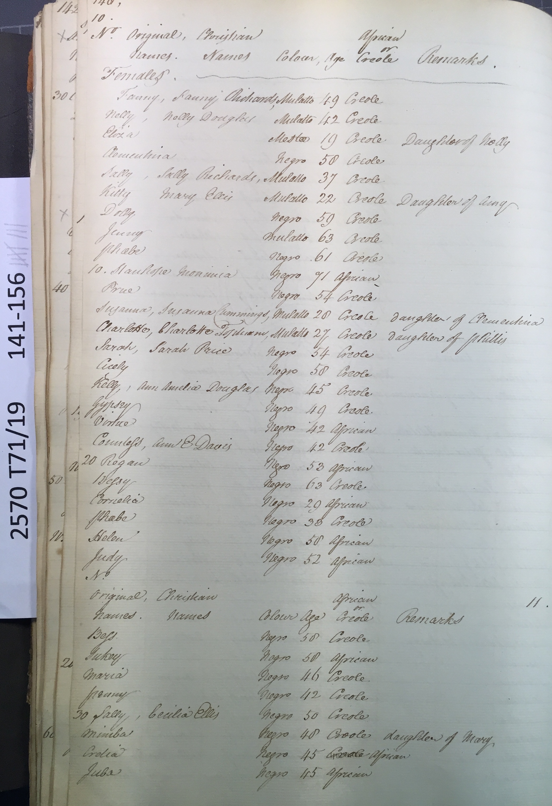 Slave register entry for Worthy Park estate in 1817, page 8 of 16. T71/19 pp. 141-156. © Images reproduced by permission of The National Archives, London, England. The National Archives give no warranty as to the accuracy, completeness or fitness for the purpose of the information provided. Images may be used only for purposes of research, private study or education. Applications for any other use should be made to The National Archives, Kew, Richmond, Surrey TW9 4DU, Tel: 020 8392 5225 Fax: 020 8392 5266.