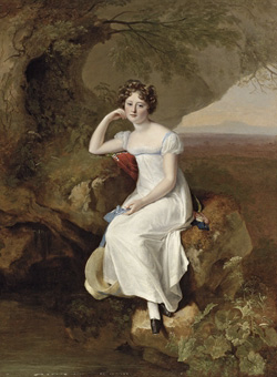 The sitter in the present picture was the daughter of Theodore Henry Broadhead. She was born at Glynde, Sussex, and married Sir George Henry Dashwood, 5th Bt., of West Wycombe, in 1823. The portrait passed to her brother Theodore Henry Lavington Broadhead, created a baronet in 1831, who subsequently changed his surname to Brinckman, the patronymic given up by his grandfather on inheriting the Broadhead estates in the 1740s.