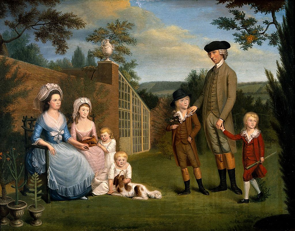 The portrait is of 'John Coakley Lettsom, physician, with his family, in the garden of Grove Hill, Camberwell, c. 1786' and is in the Wellcome Collection, where further details can be found.