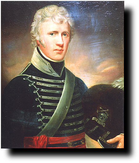 "It is one of life's ironies that real-life heroes rarely have 'tough' names like their fictional counterparts (James Bond, Jack Ryan etc.) One of the heroes of the 17th Light Dragoons was an officer called Oswald Werge. He entered the 17th as a Cornet in1793, the year that the regiment sailed to the West Indies. One troop, which included Werge, was posted in Jamaica where a well-organised band of mixed-race people descended from slaves called Maroons, were causing trouble for the British authorities. All attempts to fight them by conventional means had failed, so the Commanding Officer for the Island, Colonel Walpole, decided to train the 17th troop in the art of geurilla warfare. Initially they were successful, but the retreating Maroons took up a position on a high peak. The soldiers could not find a way up the mountain until Werge spotted a Maroon woman collecting water lower down. He followed her and discovered the path to the enemy position. The 17th attacked and drove them out. Three days later, after another skirmish, the Maroons indicated their willingness to parley but were reluctant to trust the British enough to stand up and approach. For a long time a stalemate existed until Oswald Werge put down his weapons and climbed down into the valley between them, inviting them to shake hands with him. One of the Maroons came out. They shook hands and exchanged hats as a sign of friendship. This ended hostilities and a treaty was signed which allowed the Maroons to stay in Jamaica, but the Government failed to keep their promise, and Col. Walpole resigned in disgust. Oswald Werge came through that war unscathed but five years later he recieved a slight wound to the head when encountering a little local difficulty in Bagshot. 30,000 soldiers were encamped on Bagshot Heath in September 1800 and a riot broke out over the high price of provisions, The 17th were detailed to suppress the revolt. Werge, who was a captain by this time, had his helmet shot off. He remained in the regiment for another 20 years, attaining the rank of Lieutenant Colonel but not becoming the Commanding Officer."